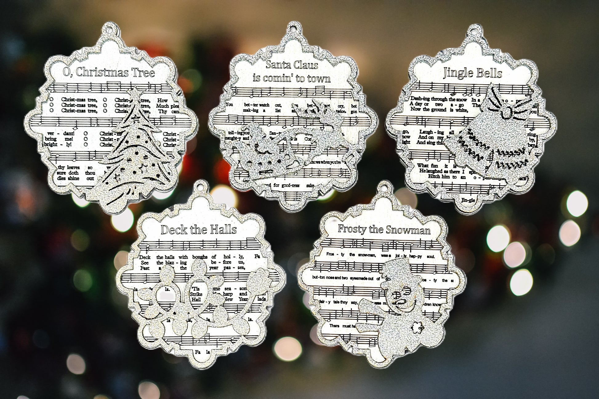 Laser-Cut Wooden Christmas Ornaments – Set of 5 Christmas Songs